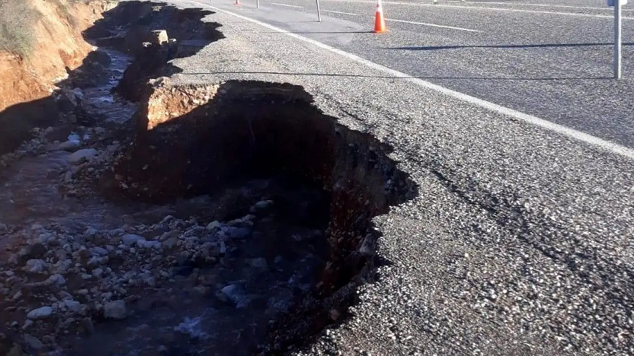 Adıyaman-Besni Karayolunun 27. Kilometresinde yoğun yağıştan dolayı çökme meydana geldi.