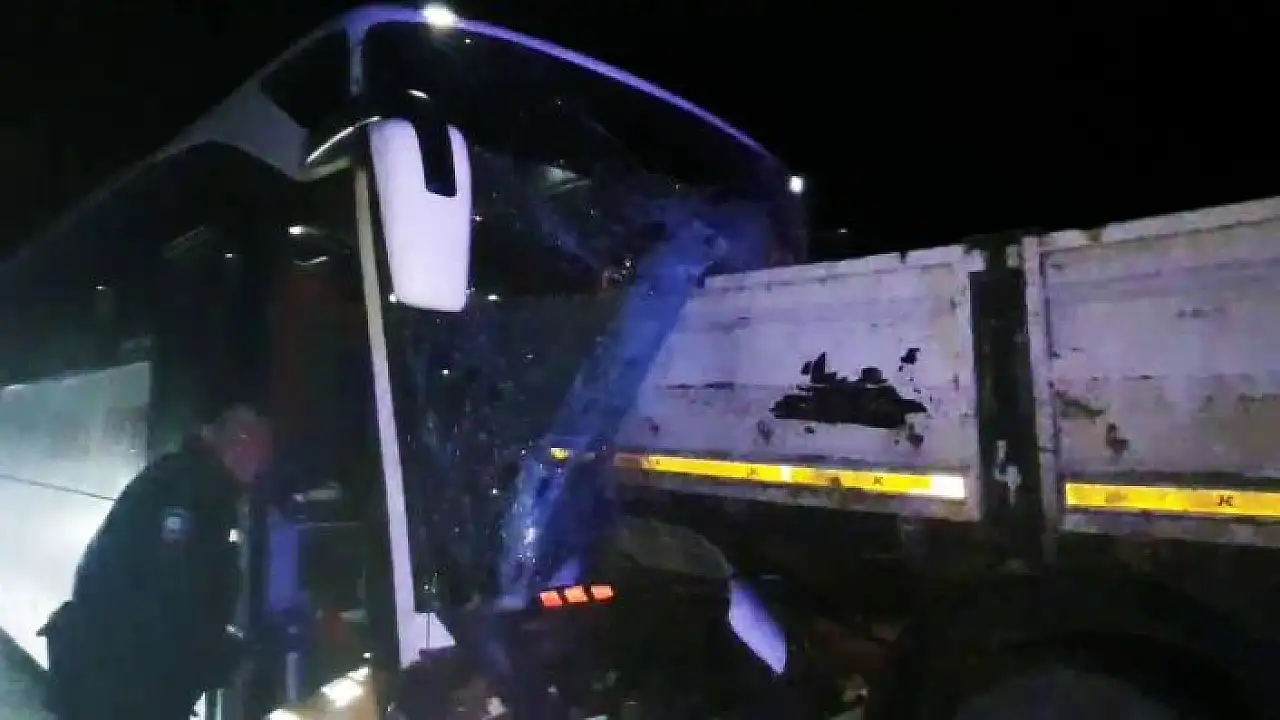 'Yolcu otobüsü tırın dorsesine saplandı: 1 ölü, 5 yaralı'